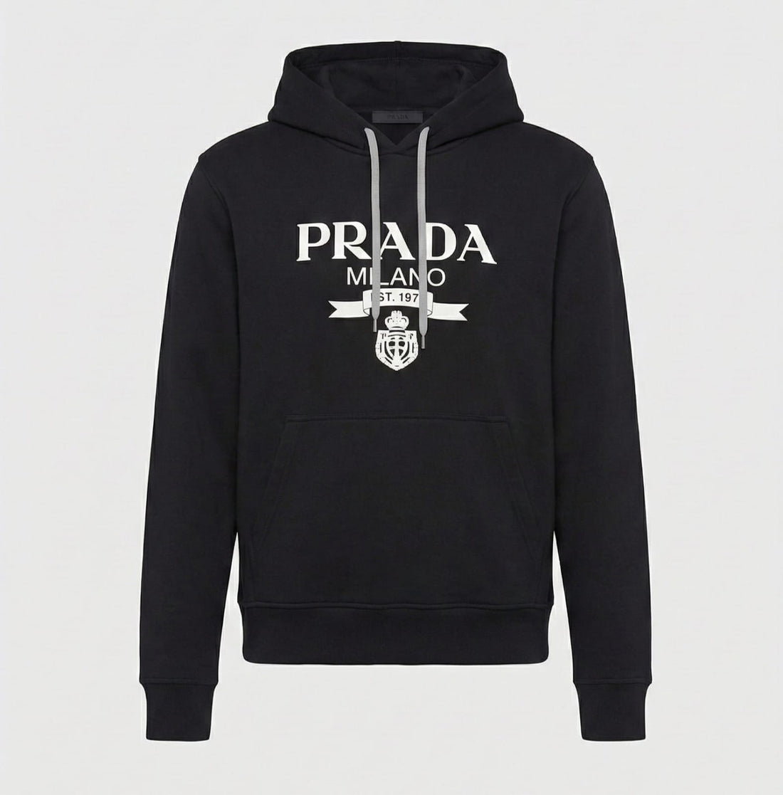 Prada Milano Style Hoodie | Black Minimalist Design | Men's Premium Streetwear | Luxury Inspired | Oversized Fit